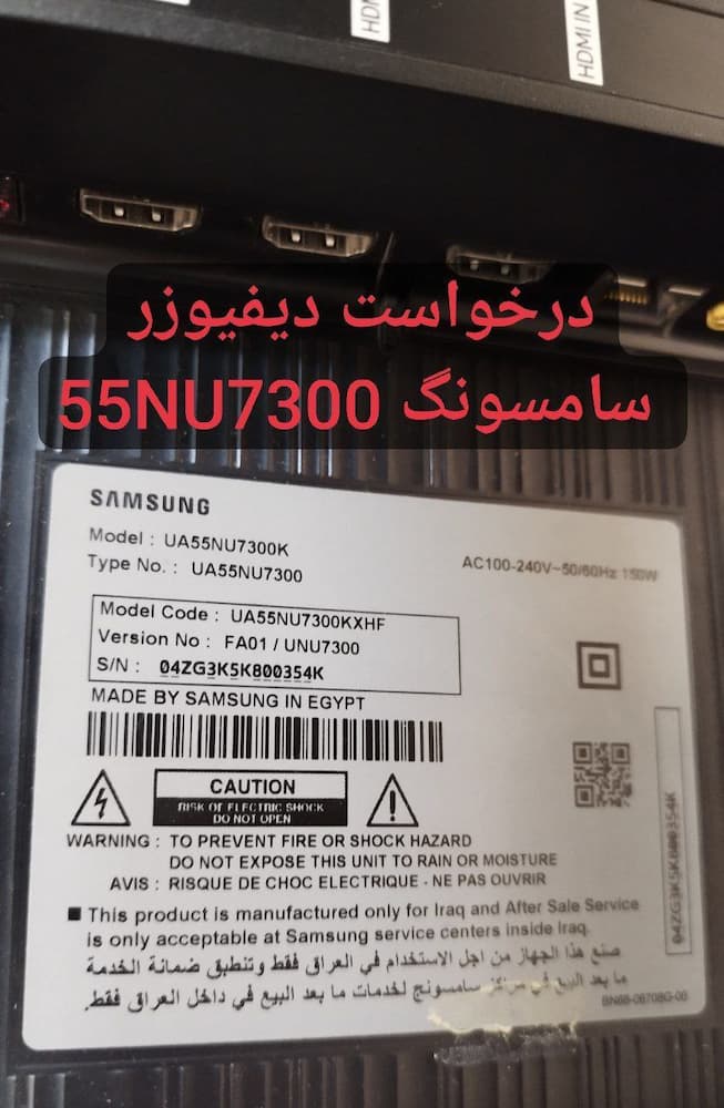 درخواست دیفیوزر تلویزیون سامسونگ 55nu7300